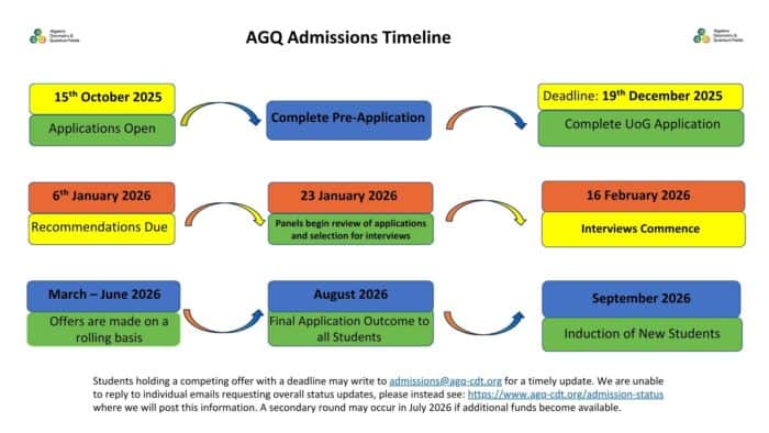 The AGQ CDT 2026/2027 admissions timeline, including important dates, is provided below for your reference.