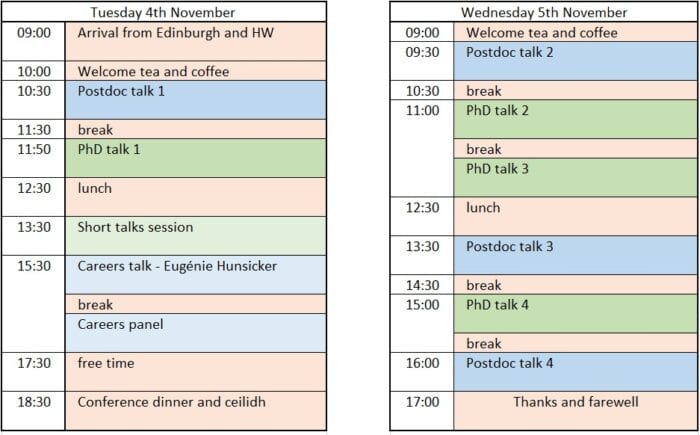 If you would like to attend, please fill in the relevant form by October 10th to register. Funding for travel and accommodation will be determined using this form. So long as the venue capacity allows, we are extending the invitation to PhD students at nearby universities, so please do apply if you are close enough to arrive at the Glasgow Grosvenor Hotel by 10am on the 4th November.